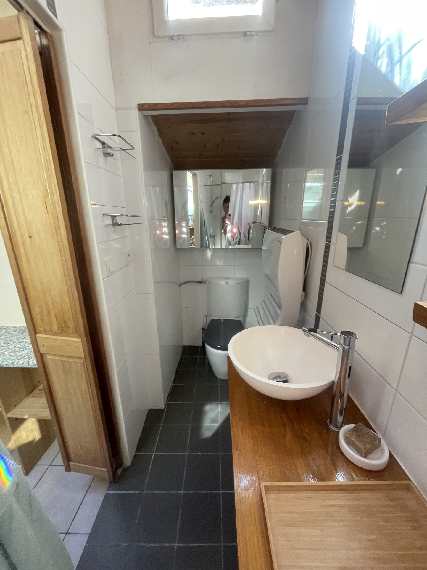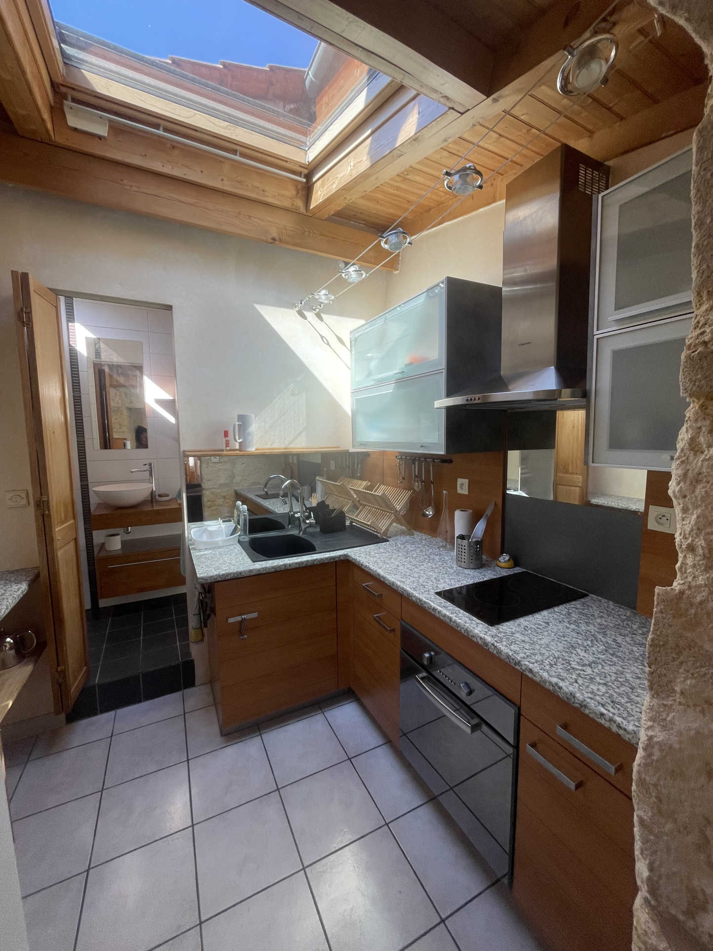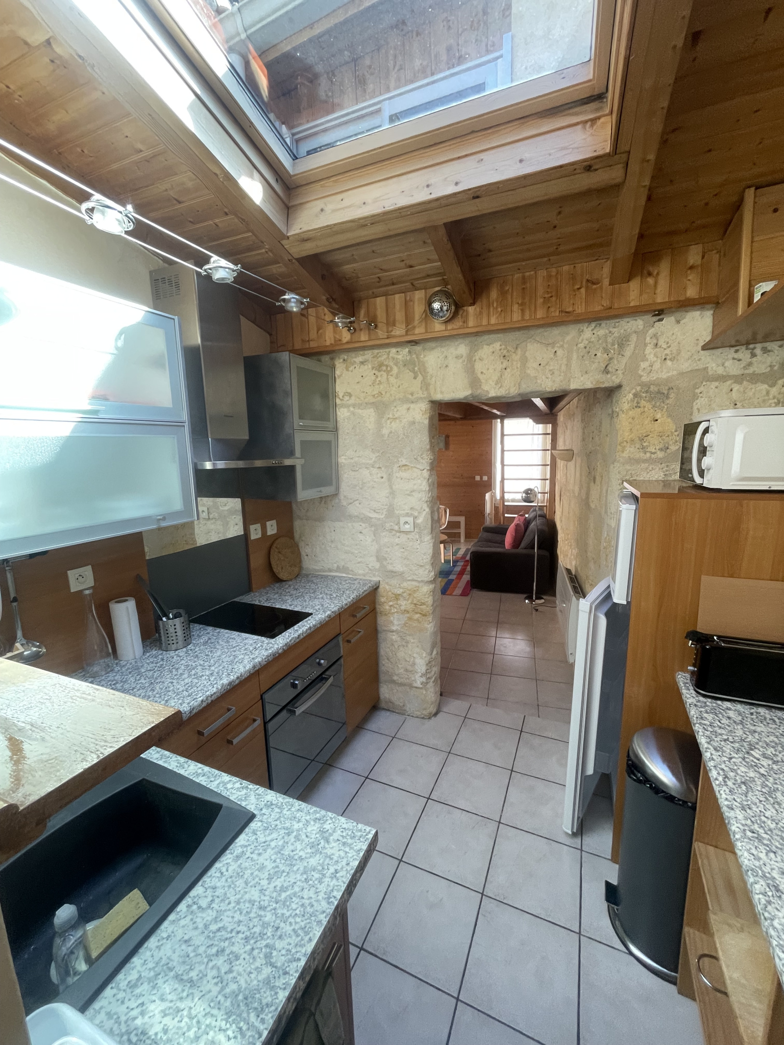 séjour avec rangement - cuisine équipée (machine à laver frigo -congel / plaque / four / hotte / nombreux rangements et vaisselle ) - chambre en mézzanine de bonne taille ( lit 140x190) - 1 salle d'eau avec wc