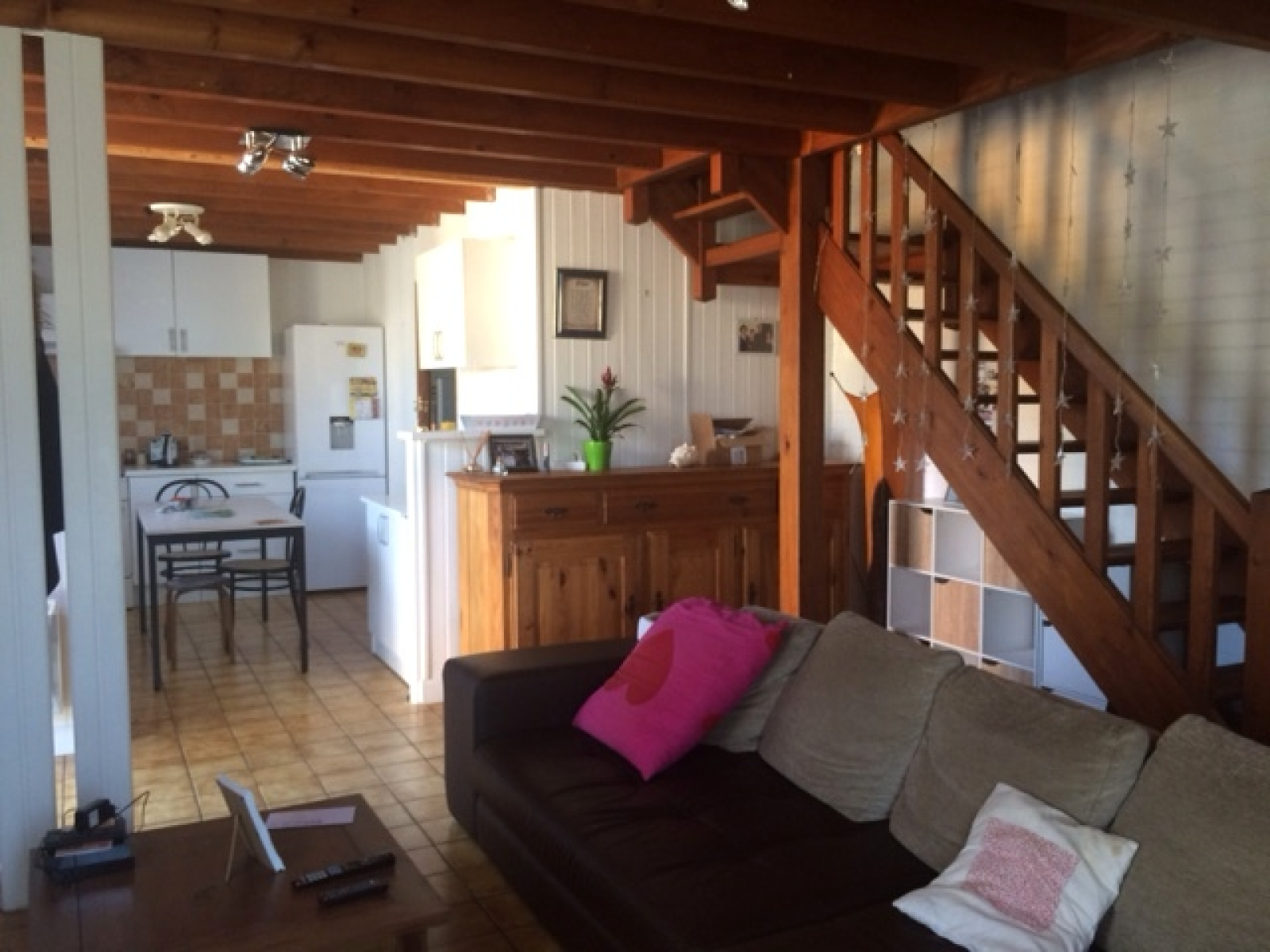 La maison existante est composée d'un séjour/ cuisine et salle d'eau en rez de chaussée,2 chambres et un bureau à l'étage, elle bénéficie également d'une annexe ( 9m2) .