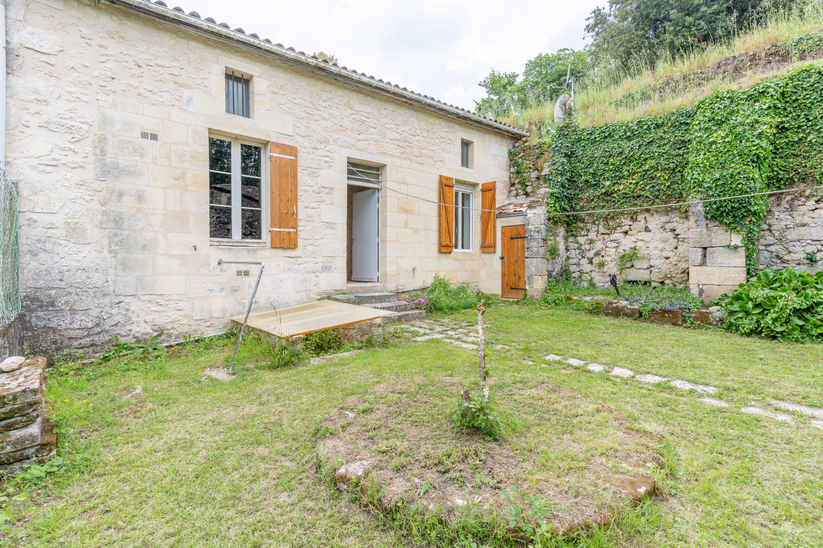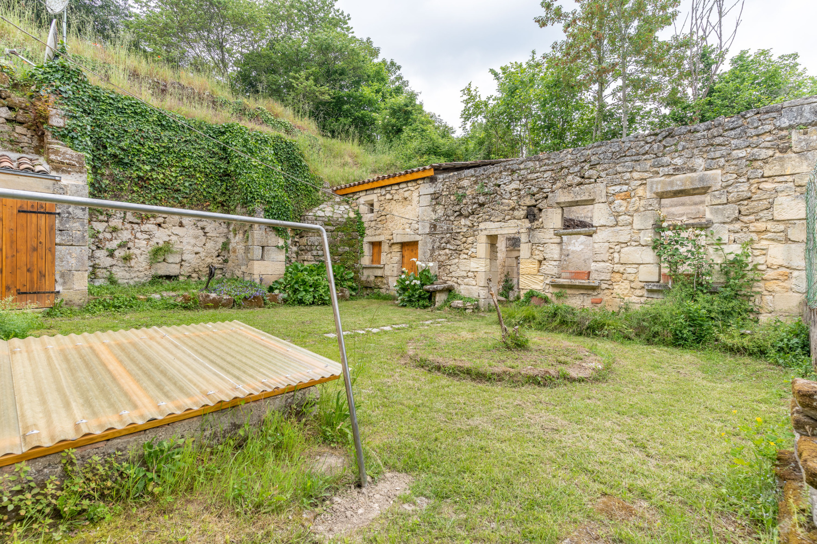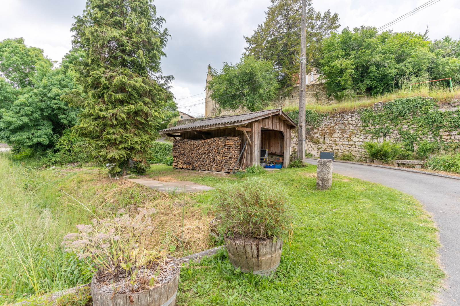 L'extérieur offre plusieurs espaces à s'approprier ..un jardin intime d'environ à l’arrière du bien ouvre sur un chai pouvant être aménagé.Un autre espace sur le devant de la maison agrémenté d'un abri permet un stationnement aisé et le rangement du bois, ce terrain bénéficie également d'un puits et d'un lavoir .. enfin pour les amateurs de jardinage une parcelle sur le dessus de cette maison laisse de quoi faire quelques récoltes ..